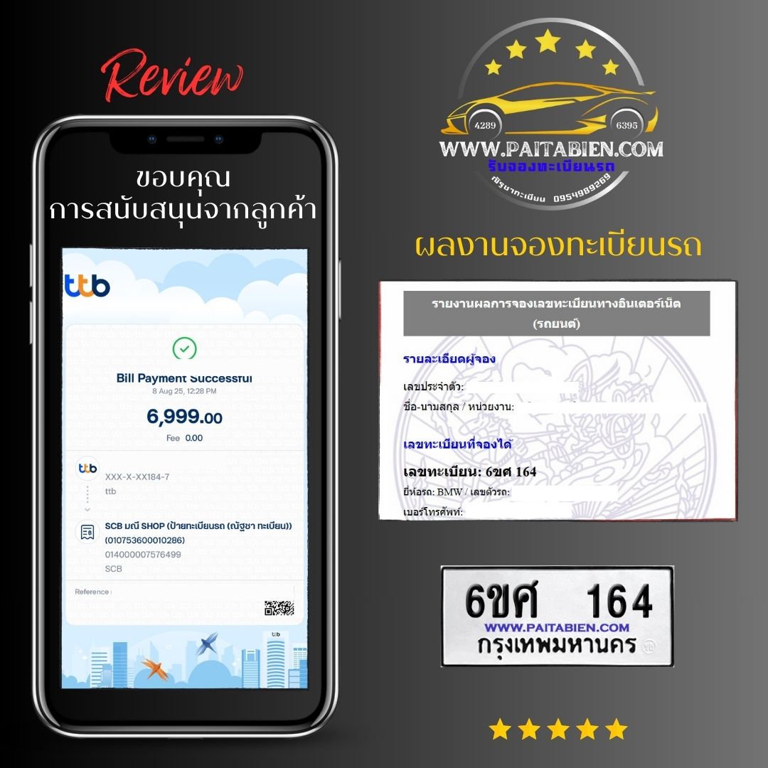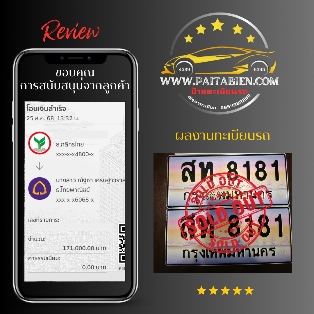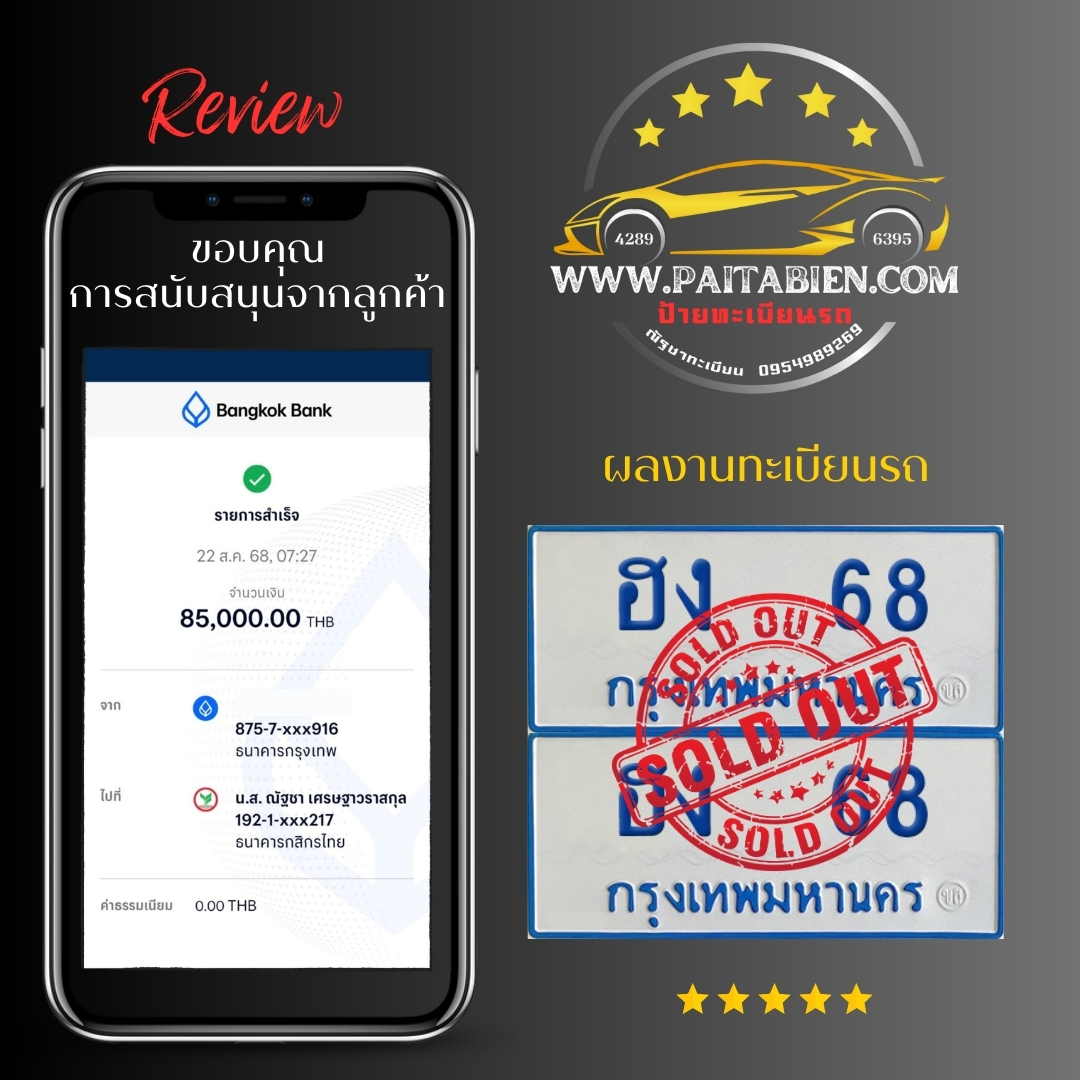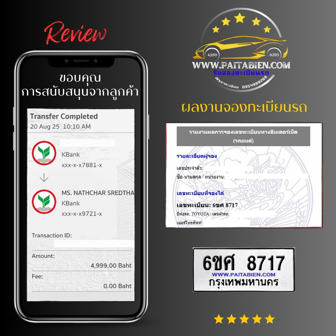 ขอบคุณความไว้วางใจจากลูกค้า ที่ให้เราดูแลเรื่องทะเบียนรถ เดือนสิงหาคม 2568