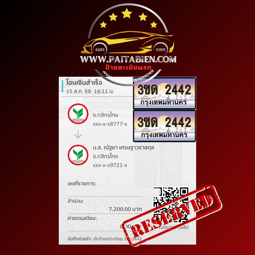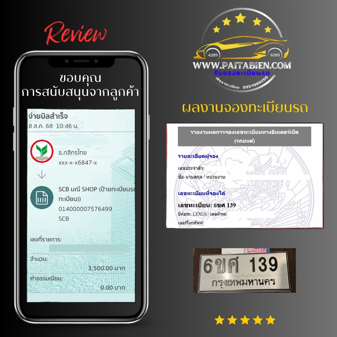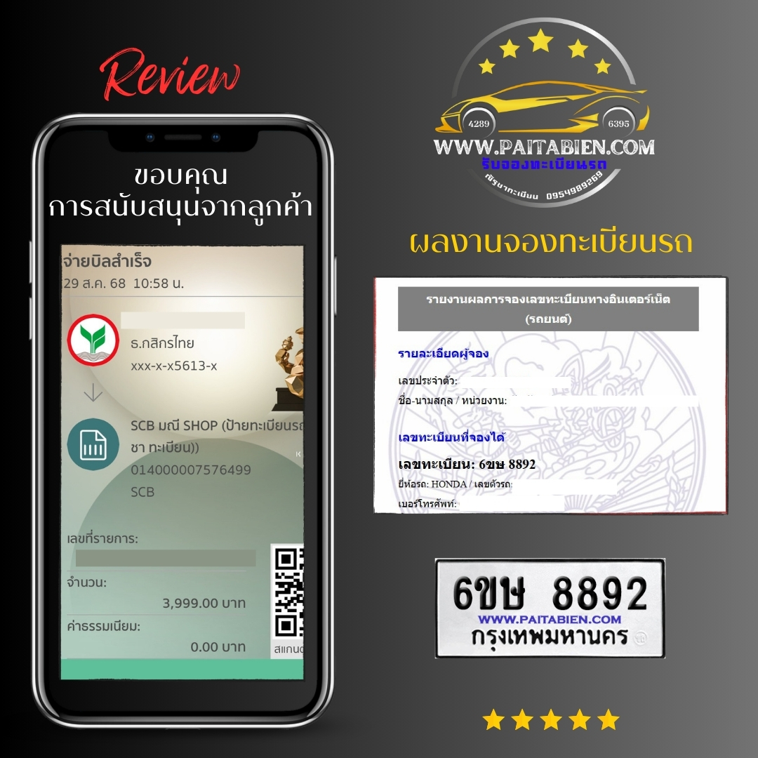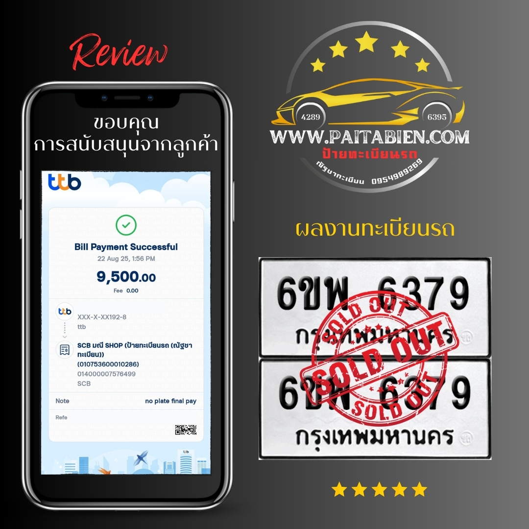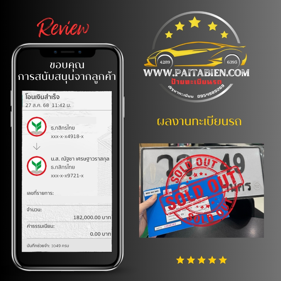 ขอบคุณความไว้วางใจจากลูกค้า ที่ให้เราดูแลเรื่องทะเบียนรถ เดือนสิงหาคม 2568
